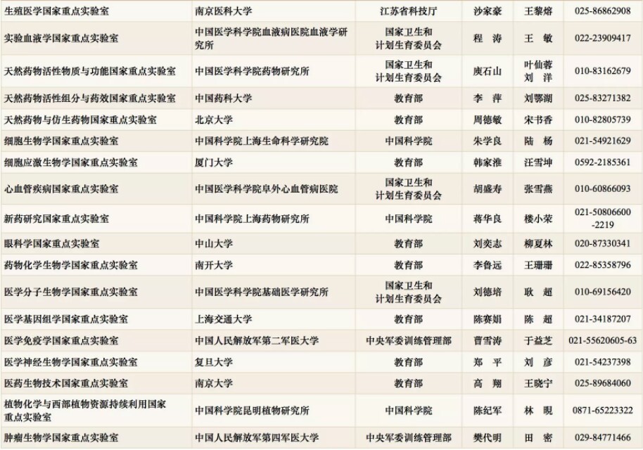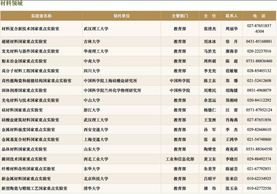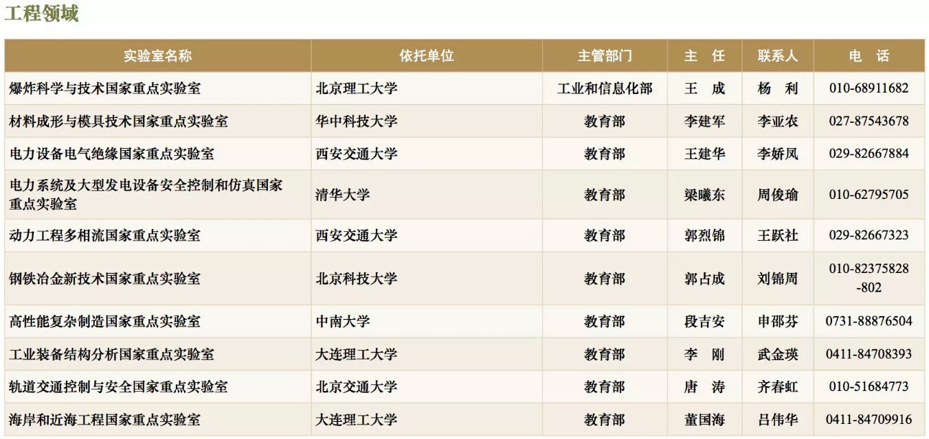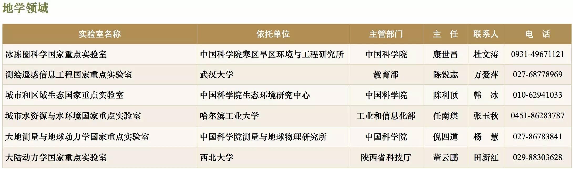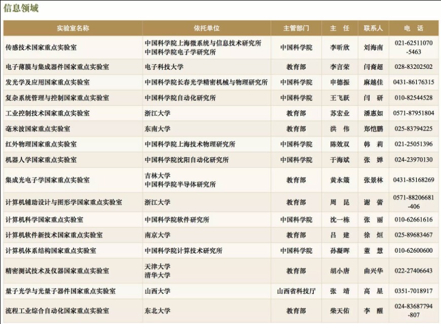 国家重点实验室名录(截止到2017年底)