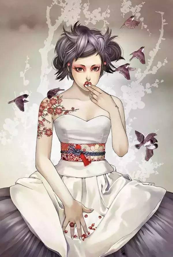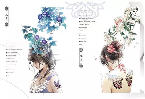 她的作品独特、唯美、笔触细腻、画风古典、温柔婉约。她将现代刺青纹身艺术和传统的工笔技艺巧妙的组合在一起。每一张作品都表现出中国古典画风和独特的时尚韵味。每一张图看了都让人对纹身产生一种心动的感觉。叫人蠢蠢欲动。
