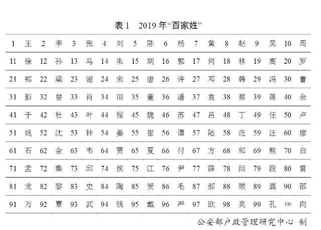 百家姓最新排名公布啦!1月21日,公安部发布了2019年的“百家姓”排名。人们过去念诵的“赵钱孙李周吴郑王”早已成为历史,“王李张刘陈”成为新的五大姓。
