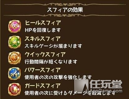 有非常好的平衡性和能力,拥有攻击和强化等各种各样的特征的类型有非常好的平衡性和能力,拥有攻击和弱化等各种各样的特征的类型有非常高的攻击力和强力的攻击技能有非常厚的HP,拥有强化防御和吸引敌人的技能只有光、暗属性上的ディフェンダー互相给予的伤害在50%以下弱化、异常状态的专家,拥有妨害敌人行动的能力HP、攻击力不是很出色,但拥有回复和强化的能力