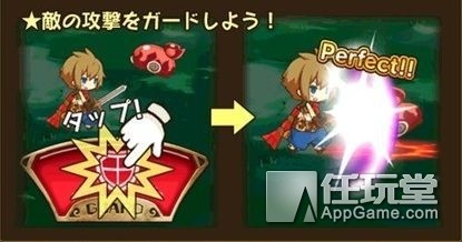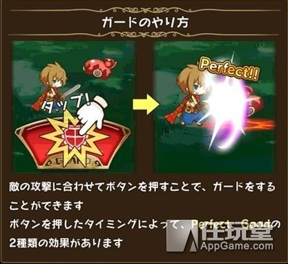 配合敌人的攻击来按防御按钮会成功防御敌人的攻击,由按的时机来分Perfect、Good两种评价。