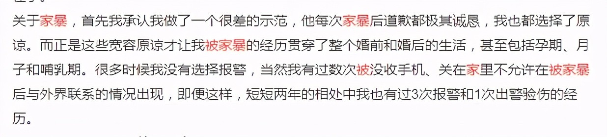 正如莫寒自述中说的:正是这些宽容原谅才让我被家暴的经历贯穿了整个婚前和婚后的生活,甚至包括孕期、月子和哺乳期。