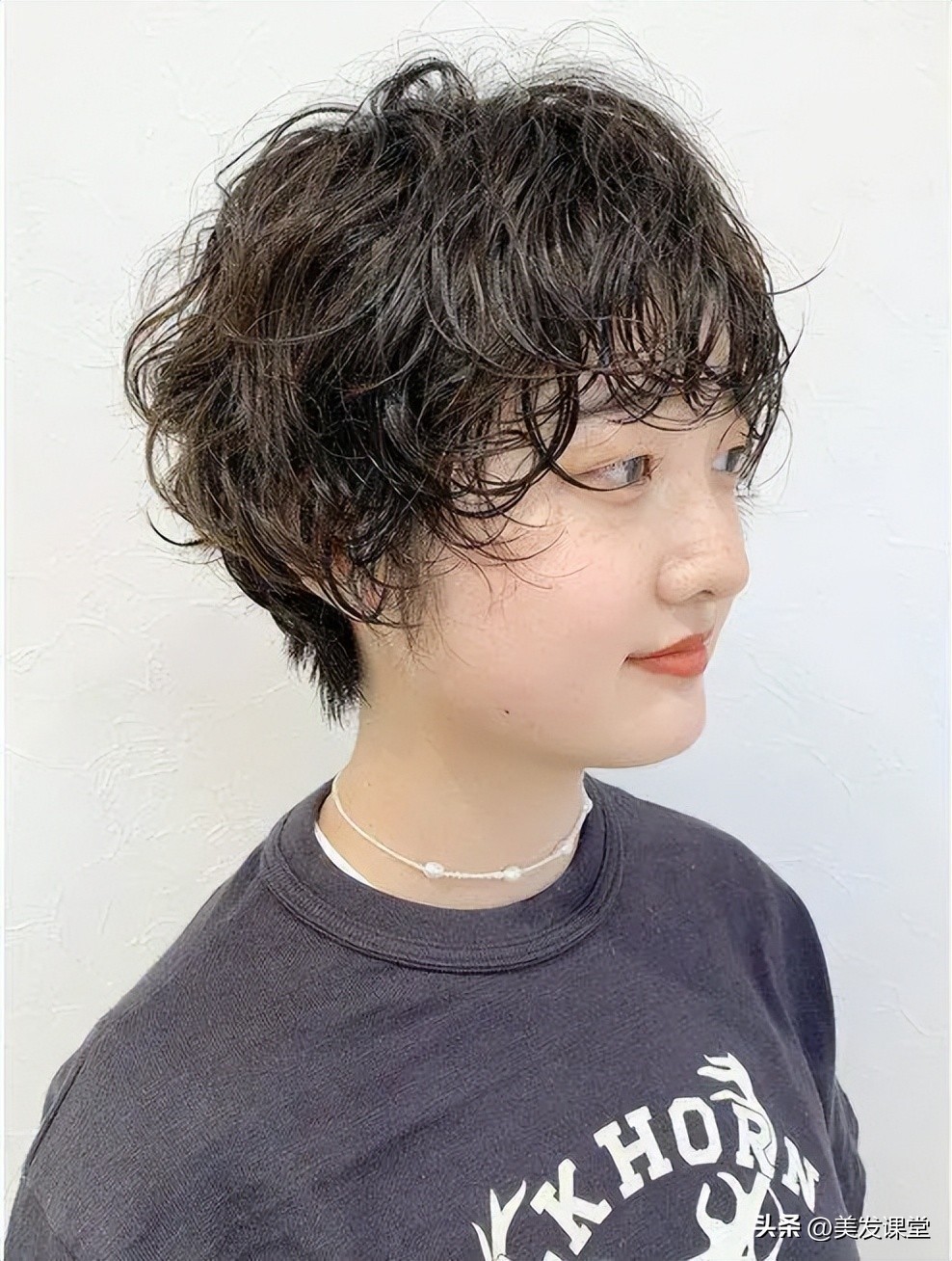 满头烫短发能有效地增加整个发型的轮廓,对于弥补头型的不足,会有一个相当理想的效果,特别是头顶比较尖的女性,烫完让你大不一样,美美的很让人羡慕。