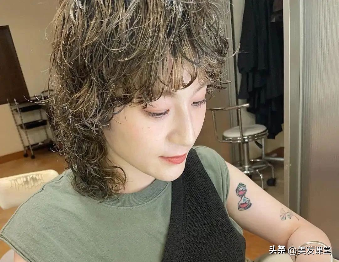 满头烫发其实也可以走出个性的风采,比如这位小姐姐的满头卷,就选择了把两侧剪短后脖位置适当留长,狼尾风的满头烫个性十足。