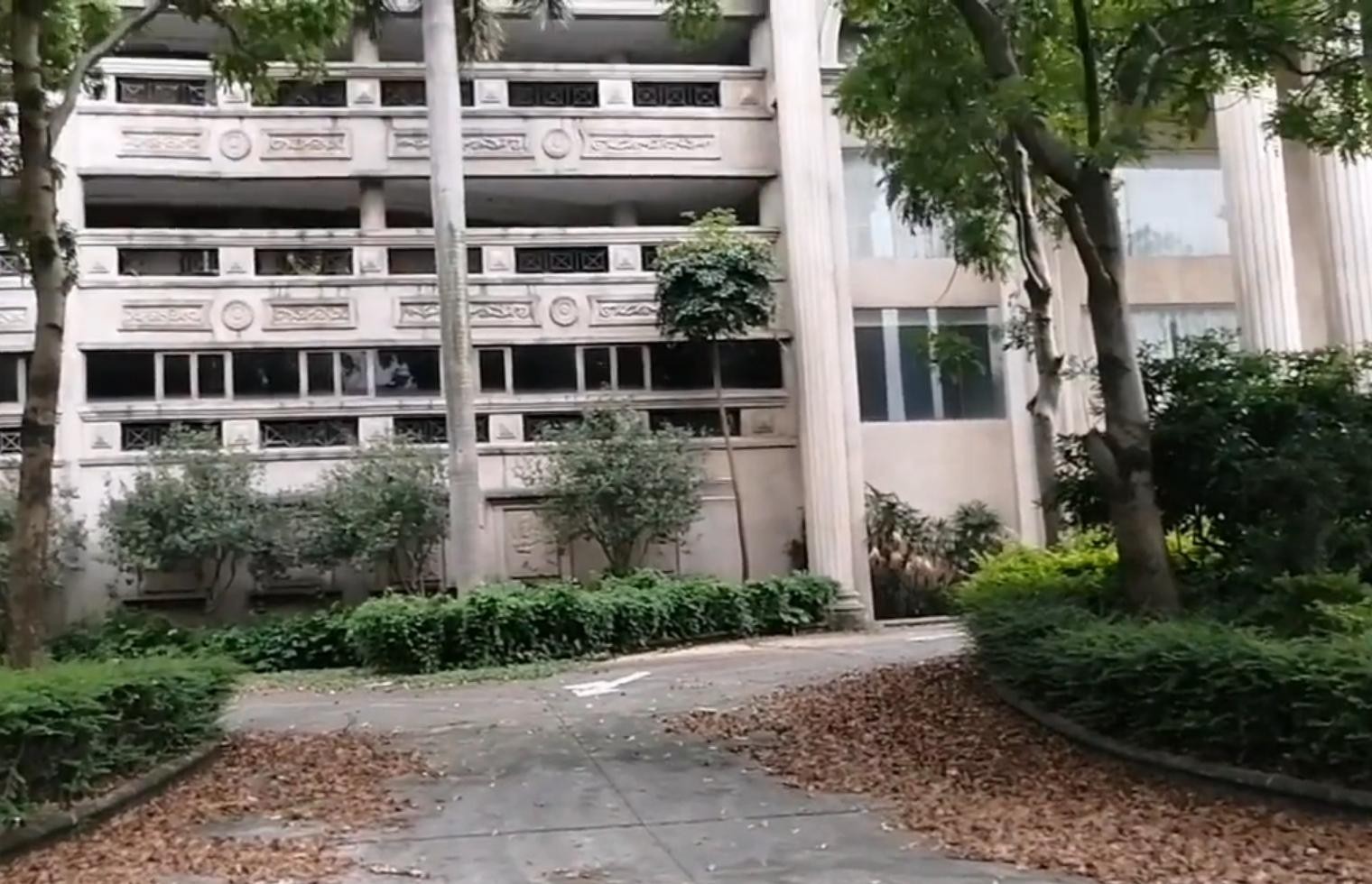 太子酒店整栋墙体颜色已经脱落,地面上落满了树叶,墙体已经开始泛白。曾几何时,这里面见证了多少的爱恨情仇。