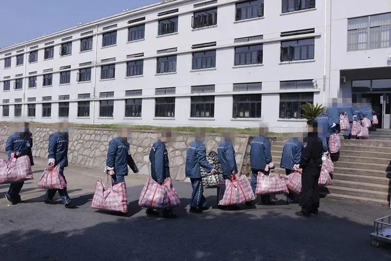 罪犯分流:简单集合后,各监区民警根据方案计划,由民警统一带回各自监区。
