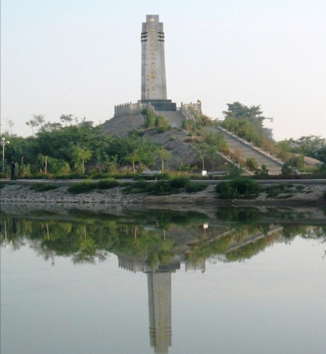 上图:一条山战役纪念碑矗立在公园中心位置。