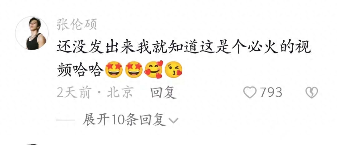更有小钟丽缇11岁的老公张伦硕前来助阵,声称:“还没发出来我就知道这是个必火的视频。”后面,更是加了亲亲的表情。可见,张伦硕与妻子还有妻子的女儿们关系很好。