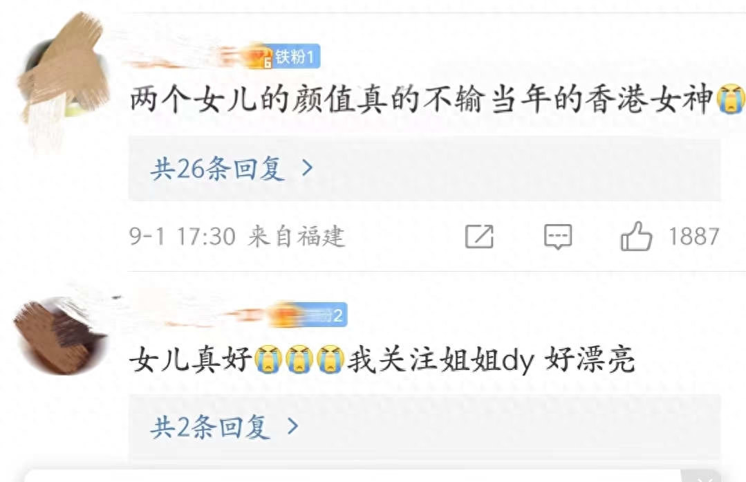 从这段短视频也可以看出,孩子们在父母的爱护下,成长得健康美丽,更是有网友说:“两个女儿的颜值不输当年的香港女神。”