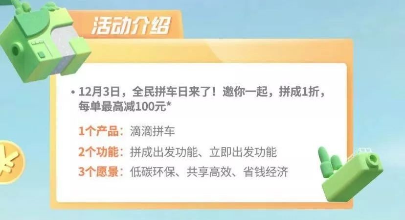 滴滴拼车是快车基础上的衍生产品,由快车司机和车辆提供服务,系统将路线相近的乘客进行匹配,共享车上的每一个座位,从而分担车费、降低出行成本。拼车能够有效减少车辆空驶率,提高交通效率,让有限的网约车供给和城市道路资源得到最大化利用。