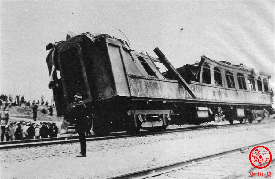 他乘坐的火车有22节,是清朝慈禧太后用过的“花车”,装饰华丽。被炸之后,他所在车厢完全碎裂,仅剩车底还算完整。