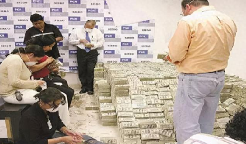 经清点,里面一共有2.07亿美金,1,800万墨西哥比索,20万欧元,11.3万港币,11块墨西哥金砖以及极尽奢华的珠宝。