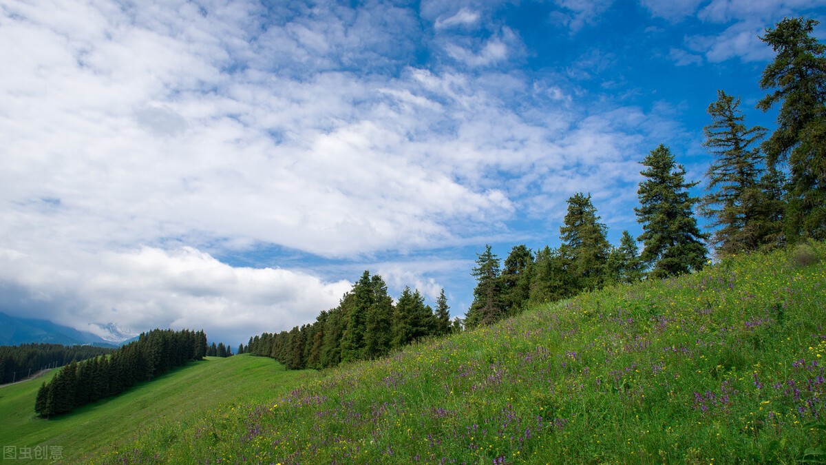 东、西白杨沟是南山景区最具有代表性的景点,东白杨沟郁郁葱葱、古树参天,林间鲜花遍地,到处有天然溪水,这里基本保留了原生态的自然环境,空气非常的清新、干净,远眺是巍峨耸立的雪山,眼前是广阔草原,完全是个避暑的胜地。