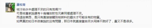 也不乏网友提到,“核污染水中处理不来的只有氚吗?可是核专家说还有十几种放射性元素同样处理不来。而这些东西,是只有直接接触到核燃料的废水才可能含有的物质。如果真的如日本政客说的没有问题,那日本就直接当自来水用掉不就好了,量又不是很多。”↓