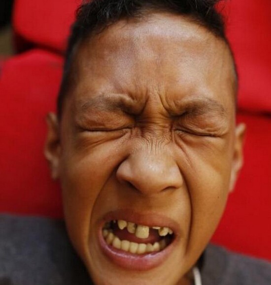图为菲律宾男孩做完割礼手术后开心地笑了,也许当麻药消退之后,他就笑不出来了。