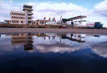 1956年6月1日,阿勒泰机场动工新建,10月12日建成通航,开辟阿勒泰—乌鲁木齐航线,开展客货运输业务。