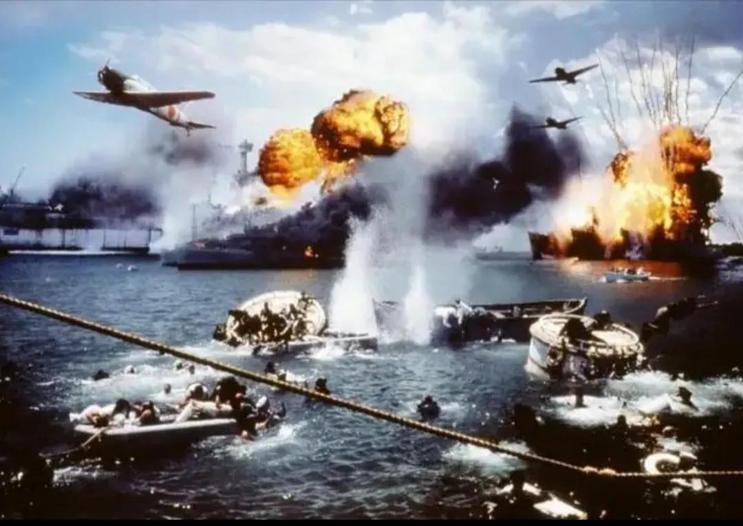 当日清晨7时许,珍珠港内的美国舰队受到由183架飞机组成的首批攻击机群的猛烈轰炸。第二次攻击在1小时后到来,日军再次出动191架飞机编队,对美国舰队进行了毁灭性的打击。