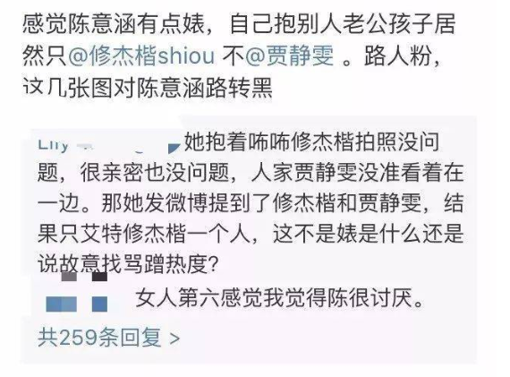 照片中,我们可以看到,陈意涵抱着贾静雯的老公和女儿,举止亲密,大有小三登堂入室的既视感。大胆晒完照后,还不忘@贾静雯老公。对于陈意涵这样的行为,网友们坐不住了,纷纷出来讨伐。