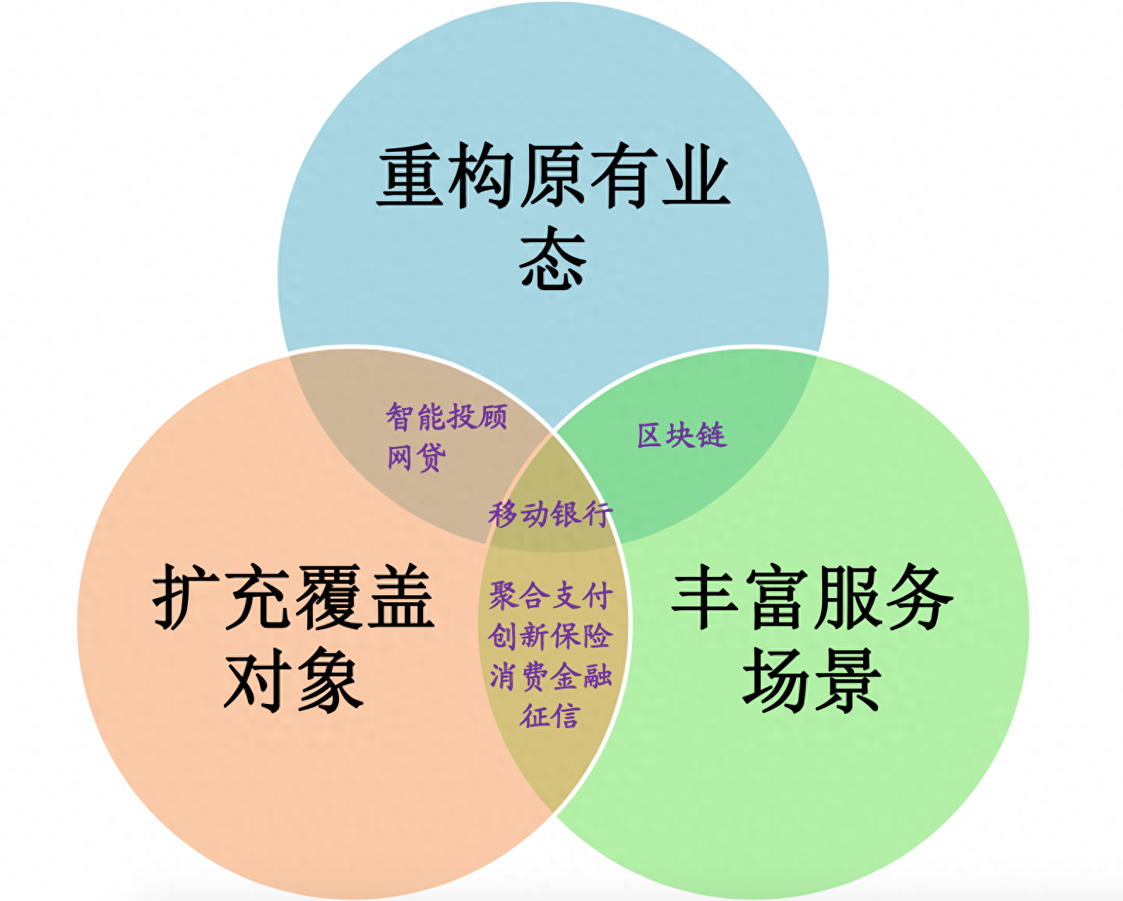 提升金融场景丰富度:聚合支付、创新保险、移动银行、区块链、消费金融、征信Ø 扩充金融业务覆盖对象:征信、网贷、智能投顾、聚合支付、创新保险、消费金融