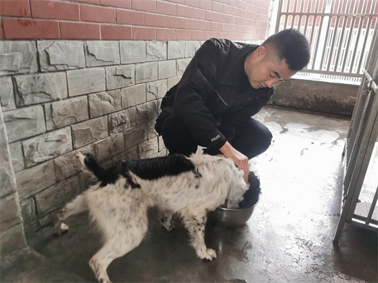 一旁,同事李婷透露,张程性格开朗,做事踏实可靠,对待训犬工作认真负责,是个富有吃苦精神和强烈使命感的云南小伙子。“训练雪狼之余,他总会花大量时间和它相处,说话、打扫犬舍、打理毛发,悉心照顾狗狗,大家说‘他对雪狼比谈女朋友上心多了’。”