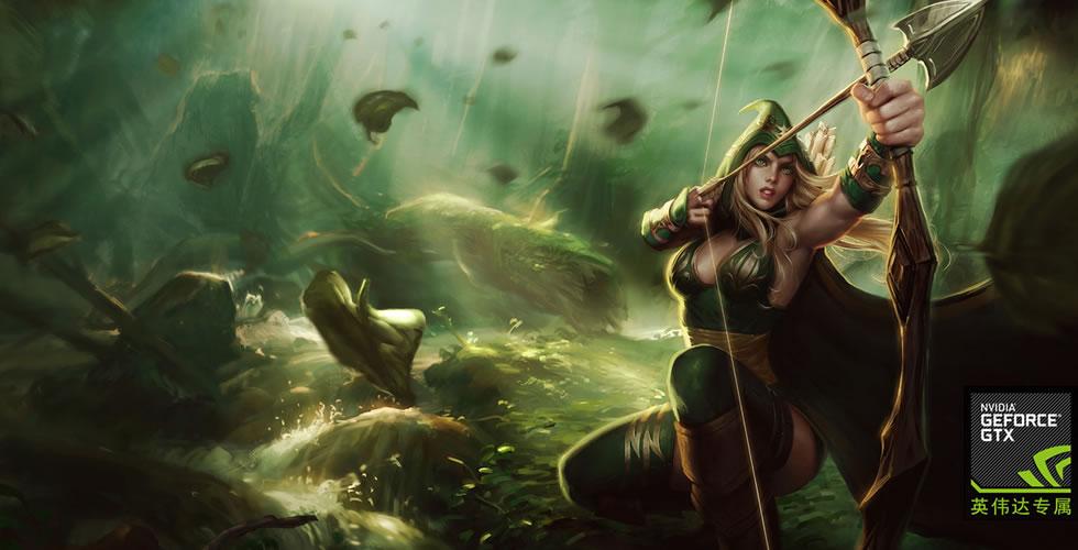 这款皮肤属于英伟达专属,意思呢大概就是购买显卡可以兑换这款皮肤,不过这个活动早就结束了,所以现在这款皮肤算是限定皮肤吧,但是很多人经常莫名其妙的把它抽出来。2012年7月份的时候,LOL和英伟达公司合作推出了一款GeForceGT630影驰虎将D5显卡。购买这款显卡就会获得一张特权卡,特权卡上有相应的CDK可以兑换这款皮肤。与这款皮肤同一系列的还有俗称绿帽子的《孤胆英豪·嘉文四世》《铁甲雄心·盖伦》,我也搞不明白为什么这个系列都是原谅色的。这个皮肤据说因为跟峡谷地图的颜色很接近,所以不是很容易被看到技能,但是我搜集相关之后发现这个皮肤的几个关键技能都自带炫光,所以也没有传说中那么神奇。这款皮肤的背景应该是扭曲丛林,大树的家,不过为什么寒冰会跑去这里,也成为了一个谜团,大概是跟罗宾汉之类的故事有关吧。
