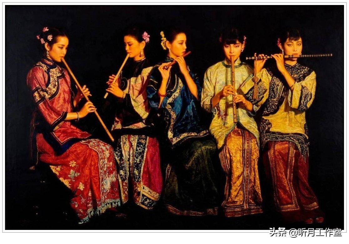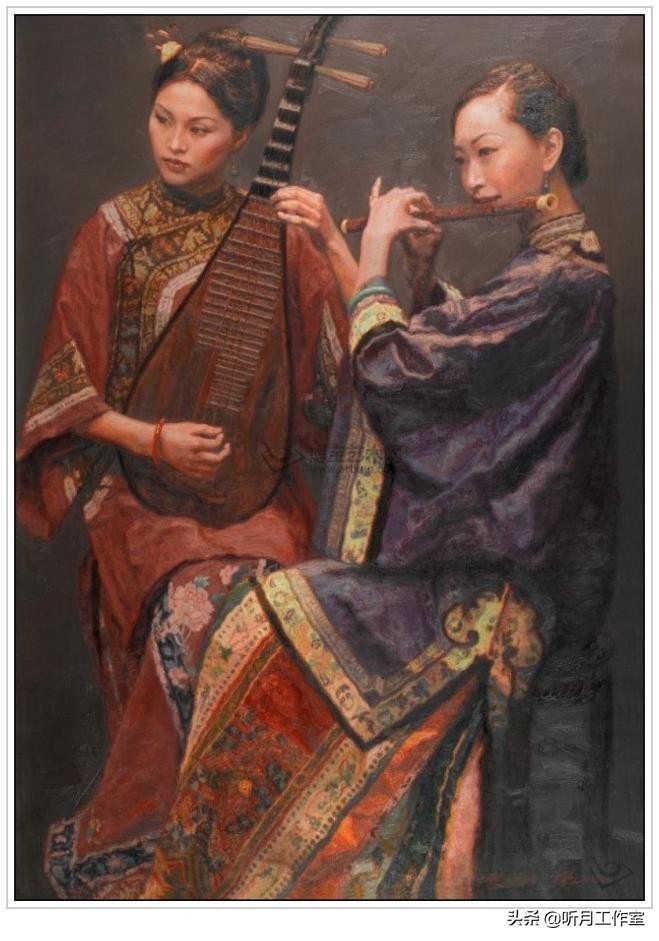 当代著名画家陈逸飞《琴韵笛音》赏析