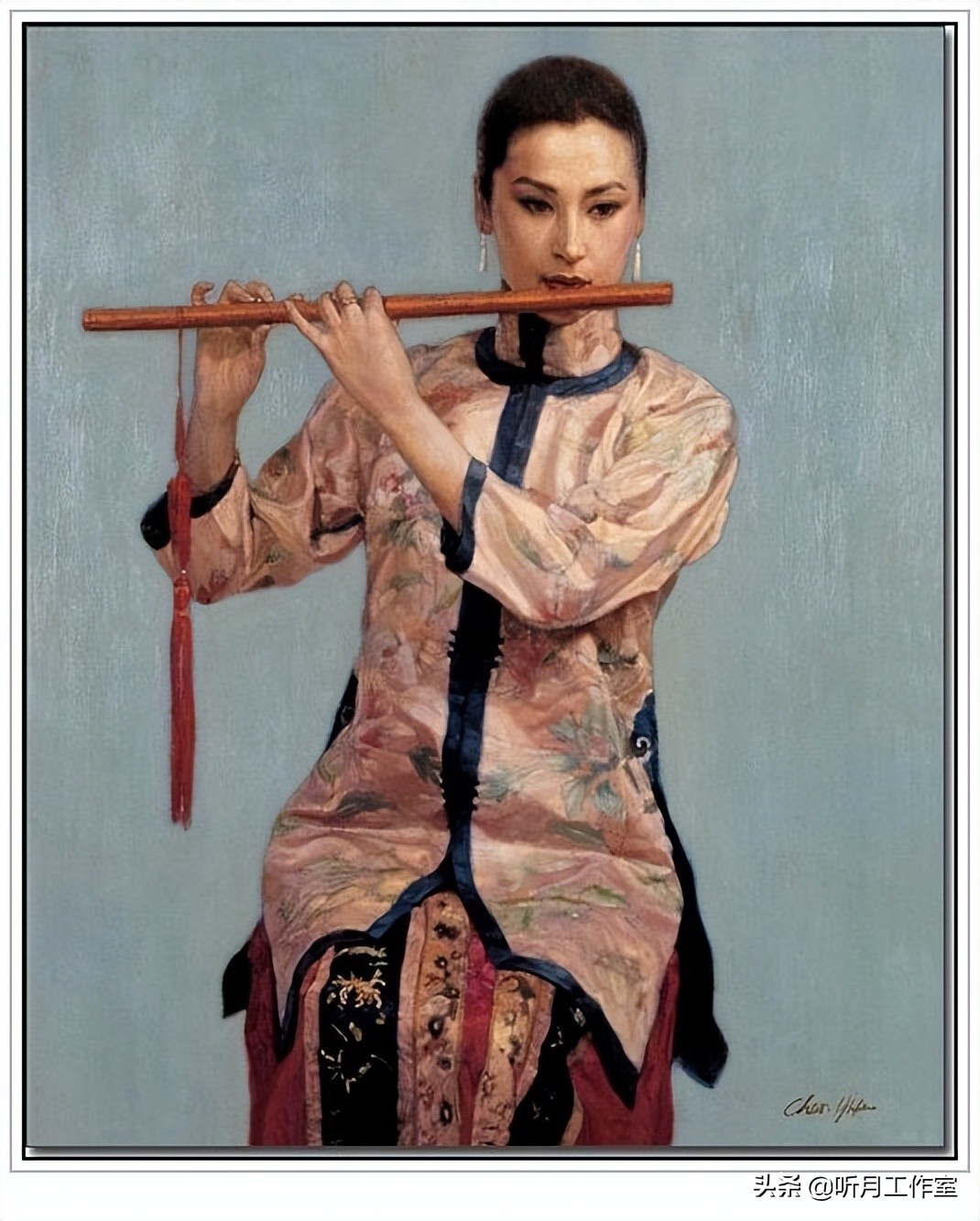 当代著名画家陈逸飞《女子吹笛子》赏析