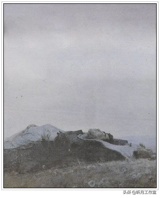 陈逸飞蔡江白《刑场上的婚礼》三联作之一《寒凝大地》布面油画,200×137cm,中国美术馆收藏。《寒凝大地》在整体构图和叙事上延续了《刑场上的婚礼》统一性,完成了故事的最终终结,在革命题材的宏伟叙事上是一个代表性符号。三幅组画一起传达出的不仅是《刑场上的婚礼》这一个完整的故事,还有故事里主人公的精神,为党和国家的伟大事业勇敢牺牲生命的革命烈士的崇高精神。