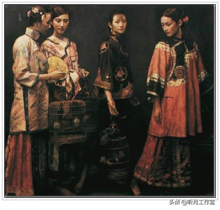 当代著名画家陈逸飞《四女子排练》赏析