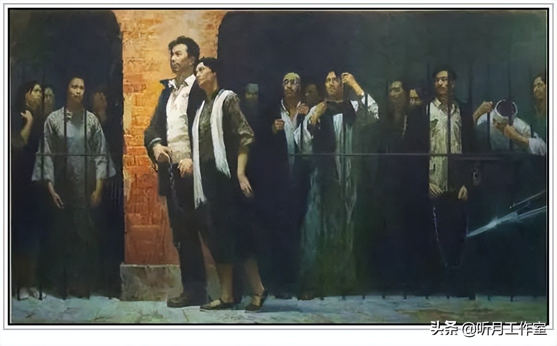 陈逸飞、蔡江白,《不朽的青春》357×210cm,1976年作。陈逸飞 蔡江白 《刑场上的婚礼》之二《不朽的青春》,在中国共产党迎来建党90周年之际,一幅展示中国共产党人宁死不屈精神的巨幅三联油画《刑场上的婚礼》在历经32年曲折之后终于全部完成,成为中国当代油画史上一幅跨世纪“婚礼绝作”。