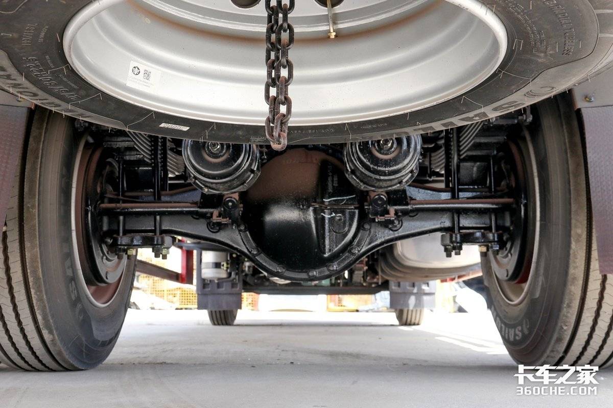 该车的轮胎均采用了赛轮品牌的275/80R22.5规格的SAR01轮胎,后双胎设计,主打低滚阻及耐用性能。通过卡车之家车速计算器计算可知,该车发动机在经济转速区间,变速箱采用最高挡时,车速可以达到74-97km/h,时效性也能拿捏到位。