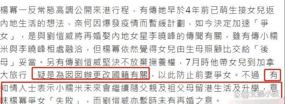 回顾过去几年,“小糯米”的抚养权问题一直为公众所关注。杨幂与刘恺威离婚后,小糯米一直留在香港,由刘恺威的父母照顾。此前曾有消息称,杨幂多次试图将女儿带到内地,但均因刘家反对而未能如愿。此次杨幂不惜天价争夺抚养权,似乎表明了她决心要实现这一目标。