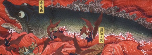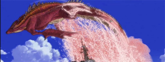 全面致敬新哥斯拉,它是传说中的神兽,在远古壁画当中被描述为古史罗,当海洋染成红色时,它将出现引发灾难。