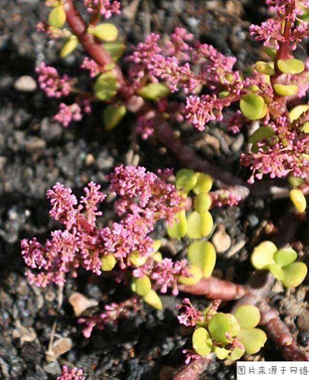 细碎的小粉花。不过金枝玉叶一般不轻易开花,所以一直都是当绿植摆放的。