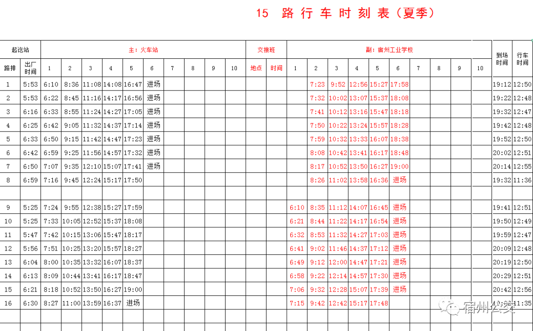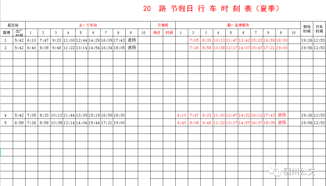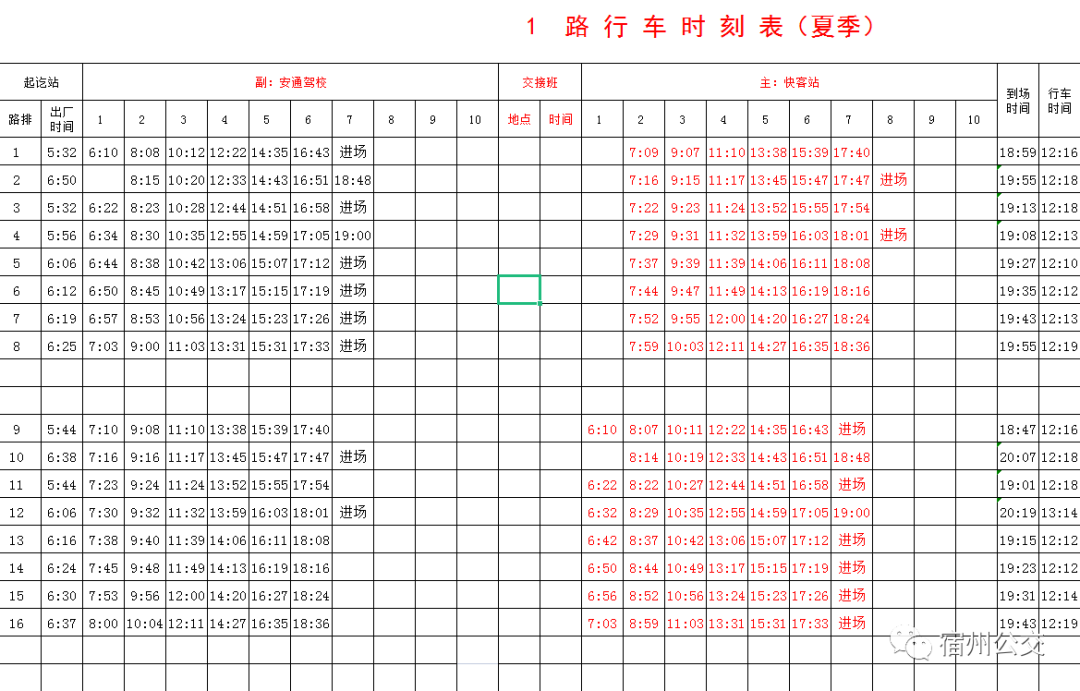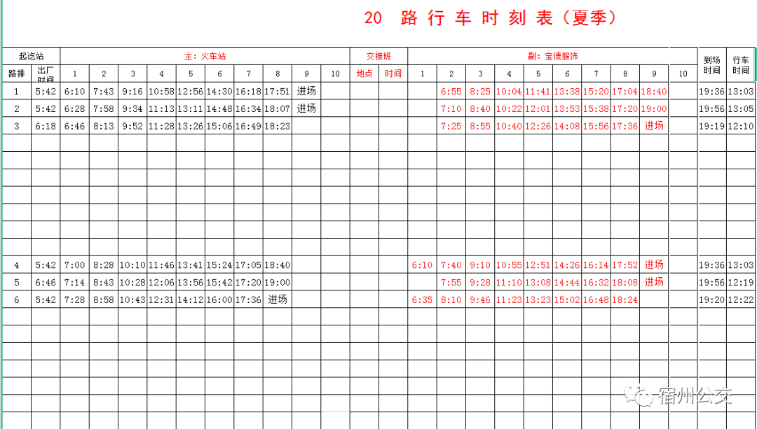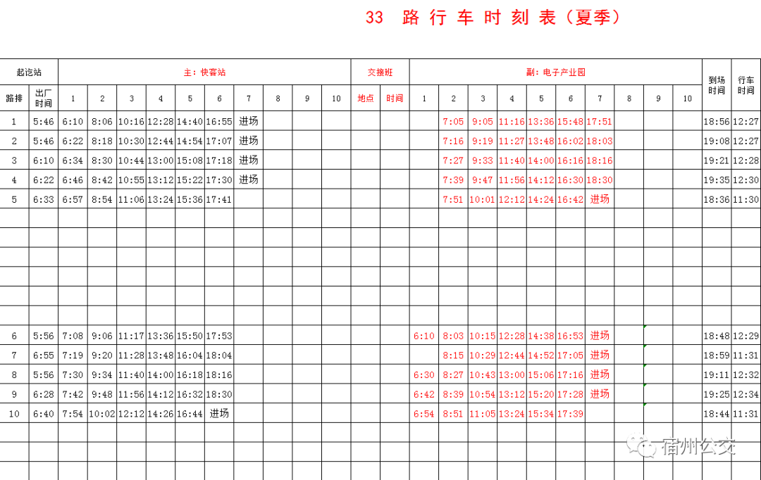 夏季公交时刻表!拿走不谢
