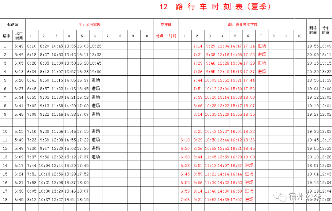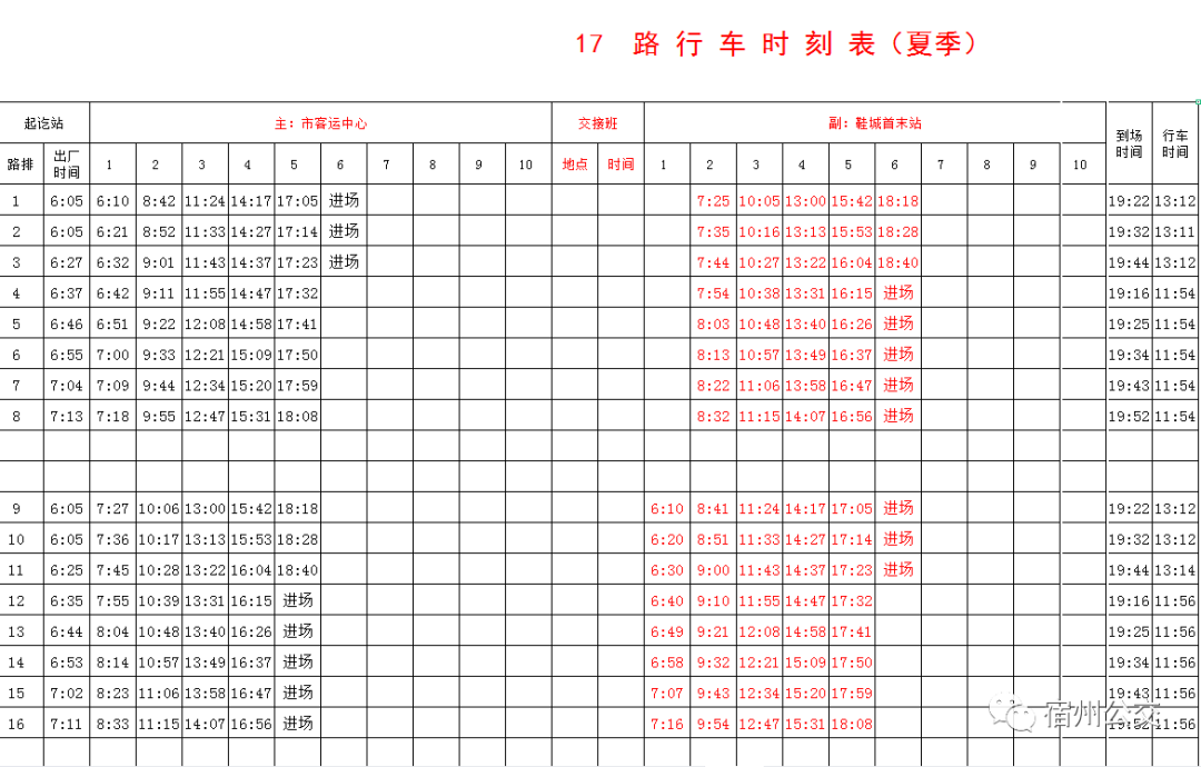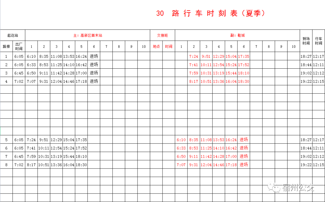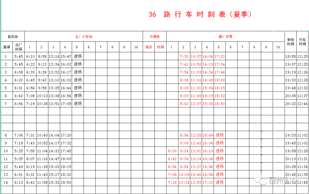 夏季公交时刻表!拿走不谢