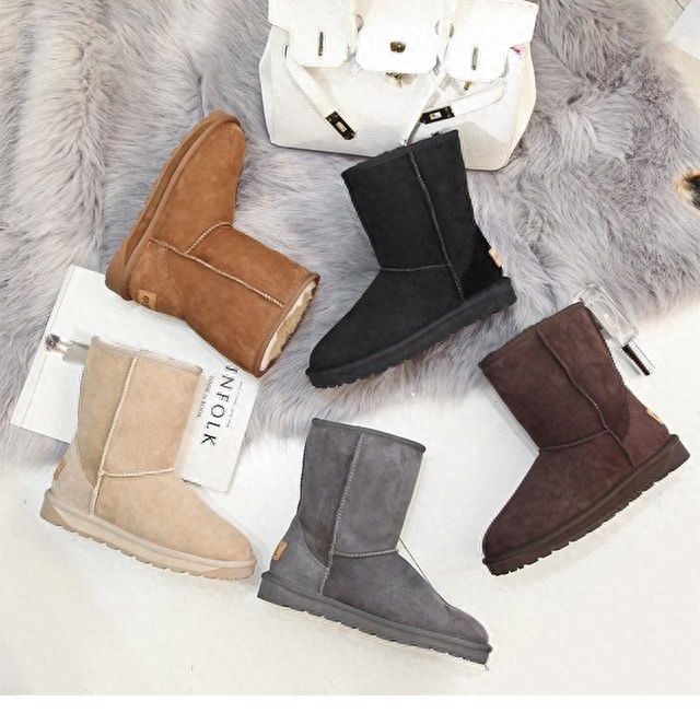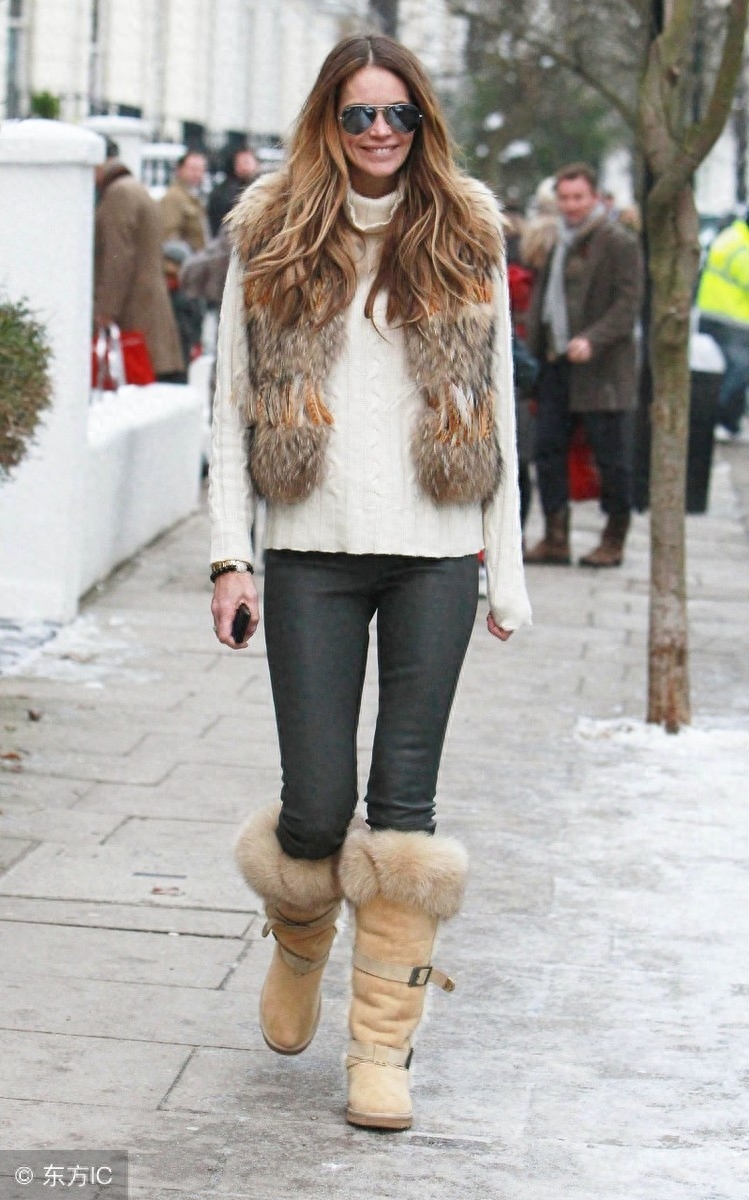 个人认为中筒靴是最好搭配的了,少了高筒靴的厚重,又比低筒靴多了分保暖的作用,保护到脚的同时也能防从脚踝进来的风,搭配起来也很好看,目前市面上的雪地靴大致分为以下几种: