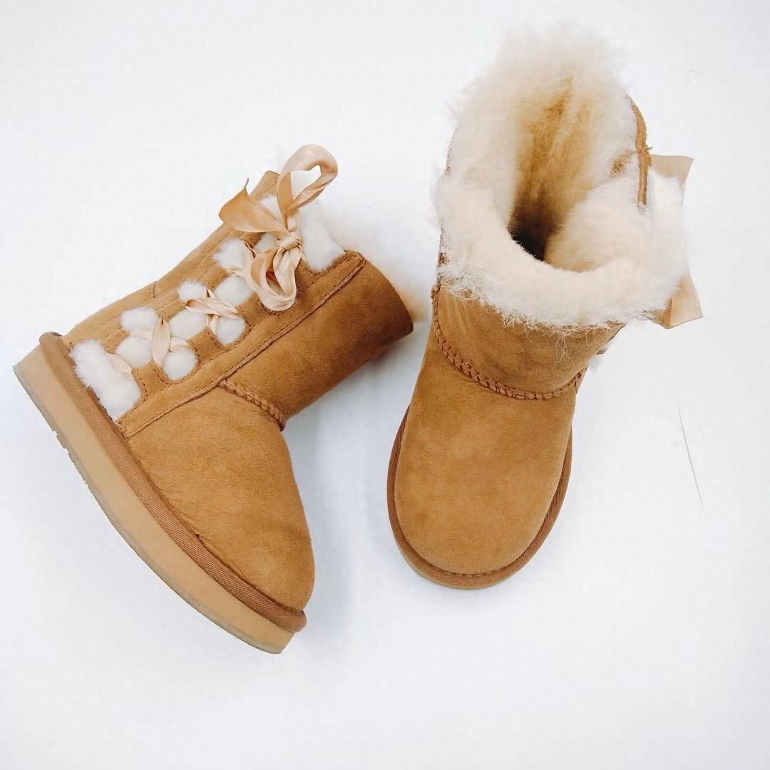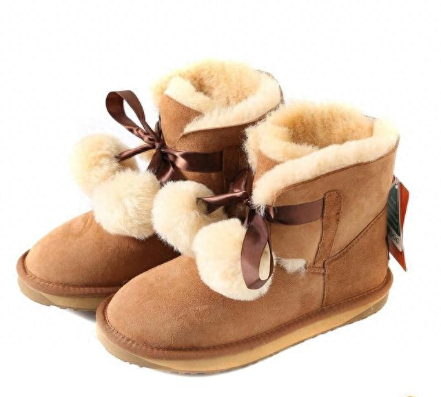 这个款式比较少女,很多儿童雪地靴也会采用这样的款式,看起来可爱十足。