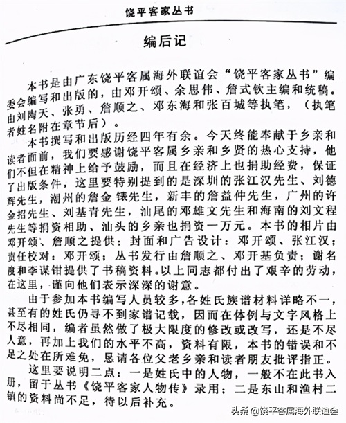 下面为《饶平客家姓氏渊源》书中部分内容影印件,全书内容如有需要可联系广东饶平客属海外联谊会秘书处索取影印件。