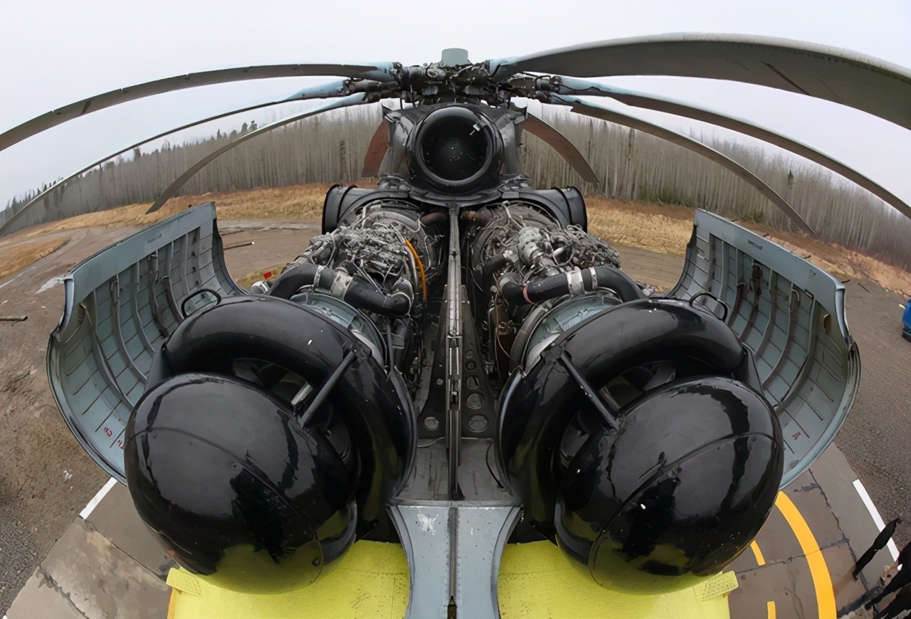 在动力方面,米26配置2台D136涡轮轴发动机,这种发动机的单台持续输出功率约7460千瓦,最大输出功率8500千瓦。米26发动机装有功率输出同步和保持旋翼转速的恒定系统,如果一台发动机发生故障,另外一台发动机则会自动输出最大功率,以保持直升机仍能正常飞行。为了更大的提高升力,米26不但旋翼直径巨大,其更是采用前所未有的8片旋翼叶片,这也是目前世界上采用桨叶片最多的单旋翼直升机了。