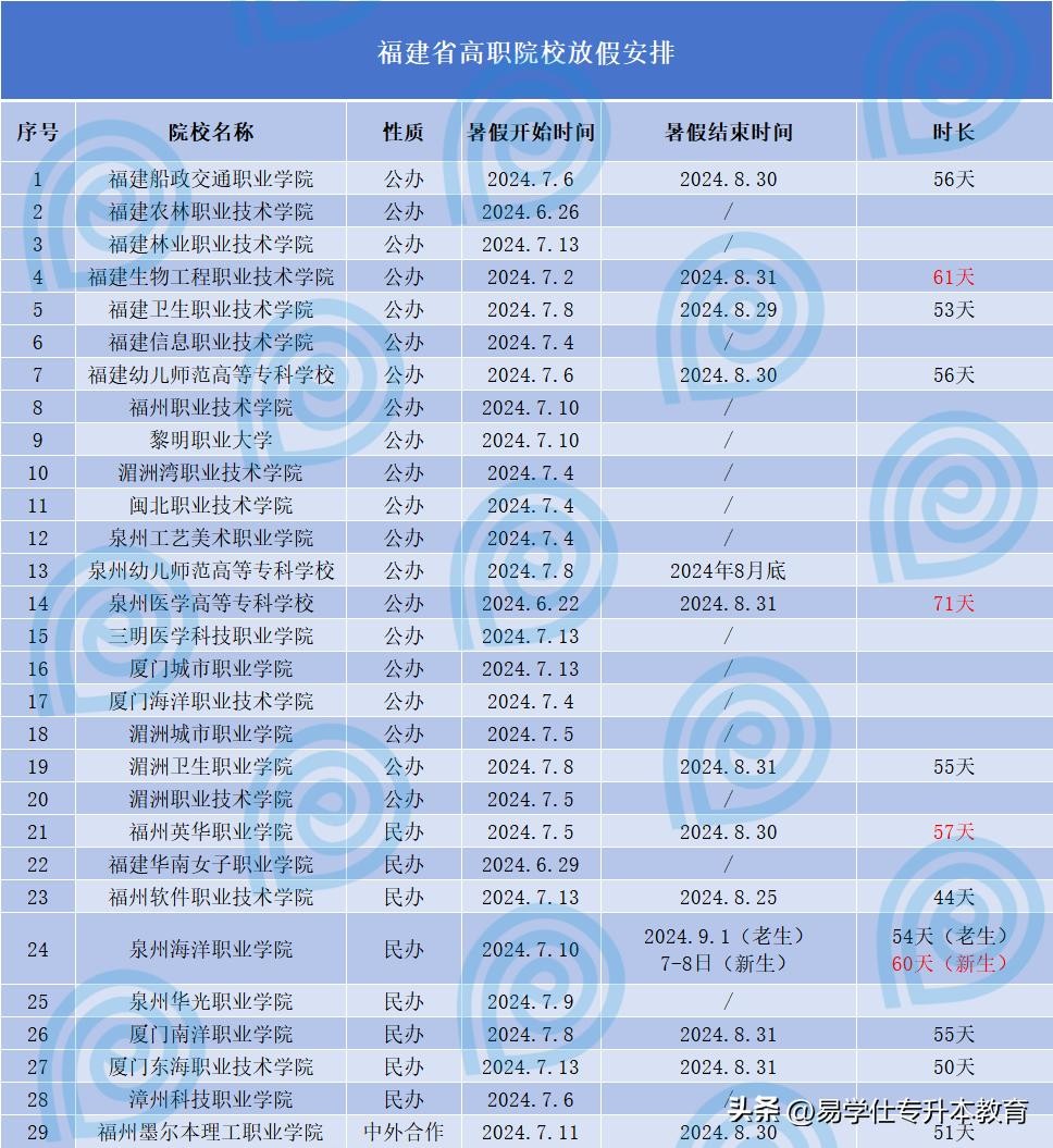 2024年高校暑假放假时间出来了,最短只有28天!
