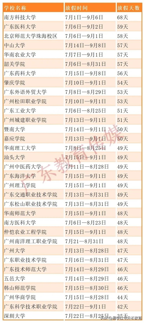 广东部分高校2024年暑假放假时间
