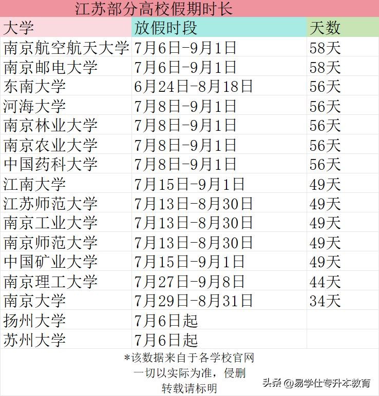 那么各高校什么时候放假?给大家汇总好了部分院校的暑假时间表~看看有你的学校吗?