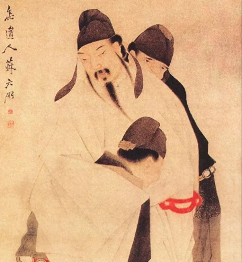 这幅李白的画像,在现在中学生的历史和语文课本中出现的频率比较多。我们现在在给李白的诗文配图时,也一般以这幅画为李白的标准画像。