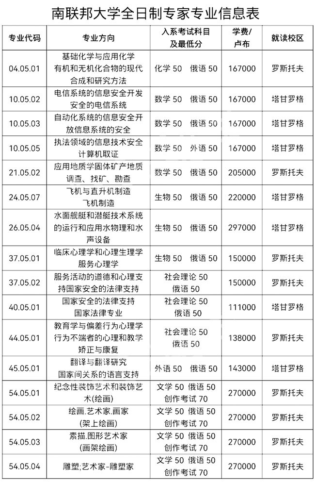本科学费:128000-220000卢布/年(约人民币7100-12220元)
