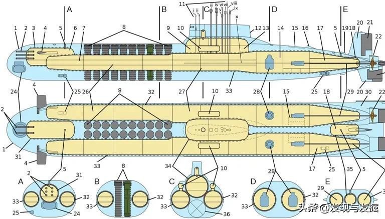 台风级潜艇结构示意图