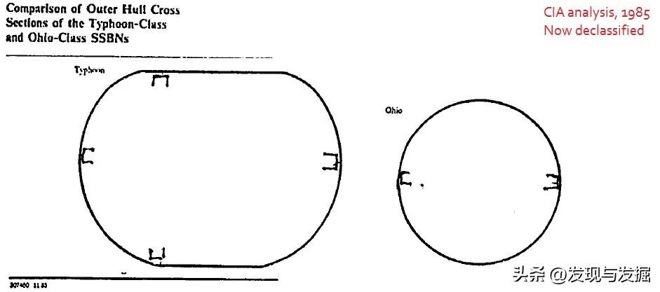 台风级与俄亥俄级潜艇外壳横截面对比