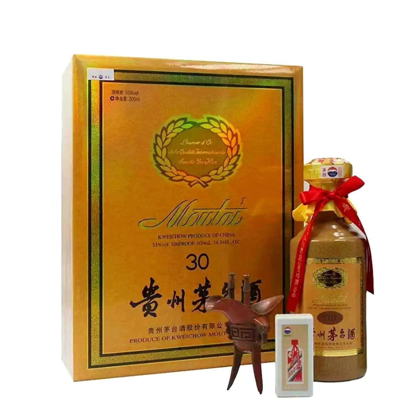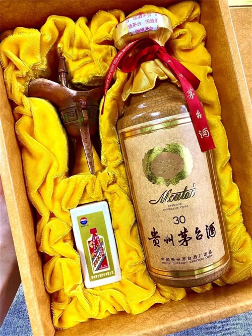茅台的30年采用不低于30年年份的基酒勾兑而成。包装来说更一步奢华采用的是橘色外壳,正标上还印有金桂叶奖张。平身采用瓷瓶,还加上了开裂纹!