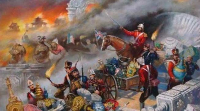 10月18日,英法联军在圆明园的建筑物上摆满柴火,点燃了火烧圆明园的第一把火。他们要把圆明园毁尸灭迹,只有这样才能毁灭他们曾经对这座大清的万园之园所犯下的罪行。英法联军,抢劫了园内的金银珍宝,最后还毁尸灭迹,这就是自诩为文明国家的英法联军在东方犯下的罪行……