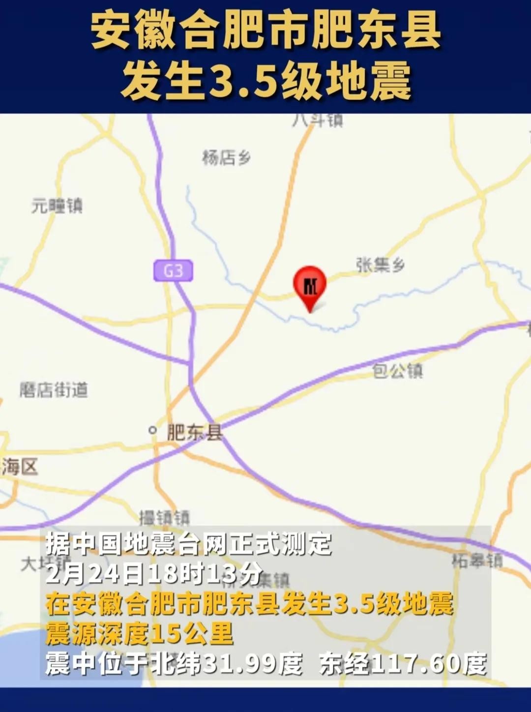 元宵节地震了!合肥肥东县发生3.5级地震